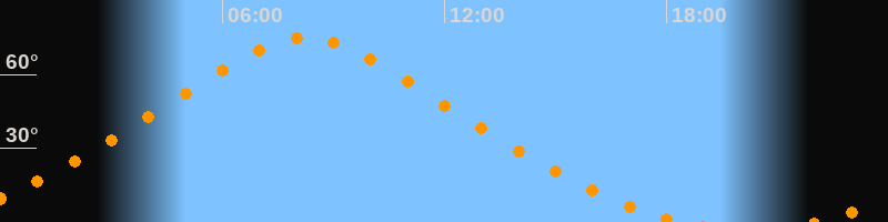 | Höchster Stand (Kulmination) | 08:14 Uhr (h = 75,1°) |