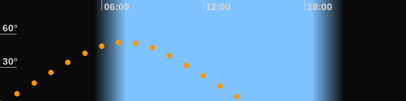 | Untergang | 14:30 Uhr im Westen (αAz = 292°) |