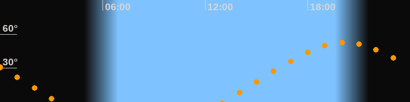 | Aufgang | 13:01 Uhr im Osten (αAz = 68°) |