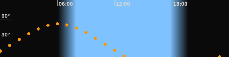 | Höchster Stand (Kulmination) | 06:05 Uhr (h = 52,5°) |