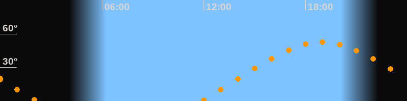 | Höchster Stand (Kulmination) | 18:59 Uhr (h = 52,5°) |