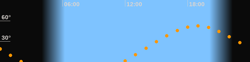 | Aufgang | 11:45 Uhr im Osten (αAz = 68°) |