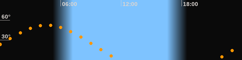 | Höchster Stand (Kulmination) | 04:36 Uhr (h = 52,5°) |
