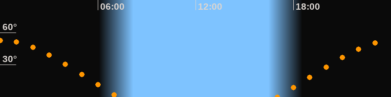 | Untergang | 07:19 Uhr im Westen (αAz = 292°) |