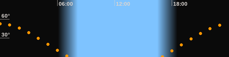 | Untergang | 07:15 Uhr im Westen (αAz = 292°) |