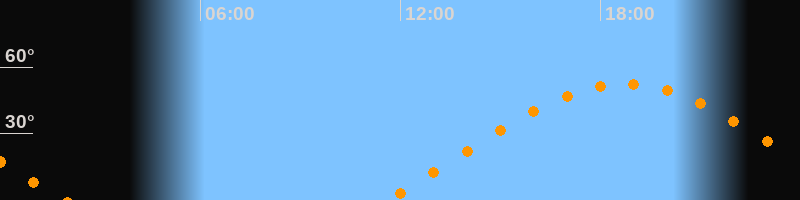| Aufgang | 11:34 Uhr im Osten (αAz = 68°) |