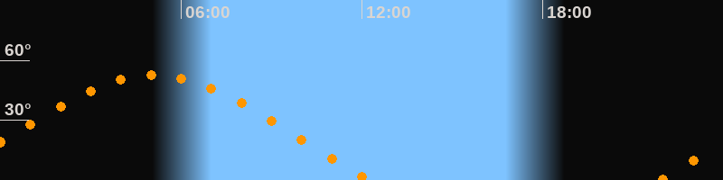 | Aufgang | 21:51 Uhr im Osten (αAz = 68°) |