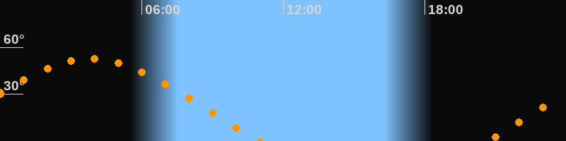 | Untergang | 11:00 Uhr im Westen (αAz = 292°) |