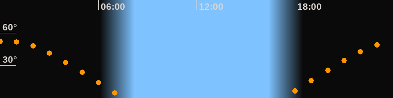 | Untergang | 07:35 Uhr im Westen (αAz = 292°) |