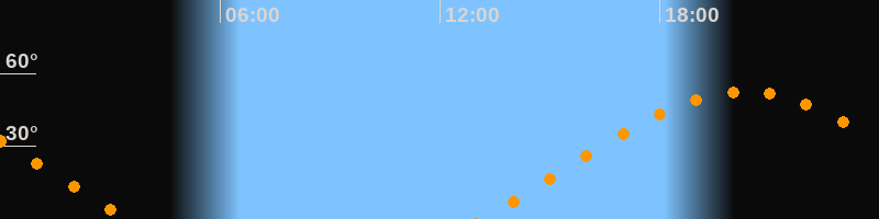 | Aufgang | 13:08 Uhr im Osten (αAz = 68°) |