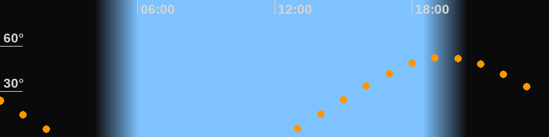 | Aufgang | 12:17 Uhr im Osten (αAz = 68°) |