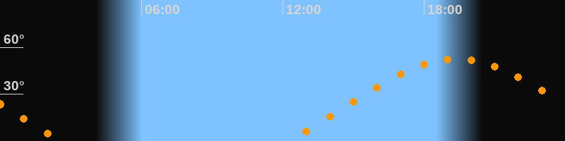 | Aufgang | 12:13 Uhr im Osten (αAz = 68°) |