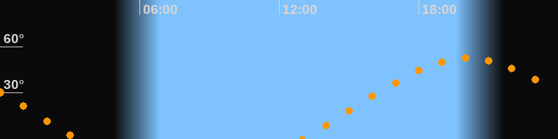 | Aufgang | 12:58 Uhr im Osten (αAz = 68°) |