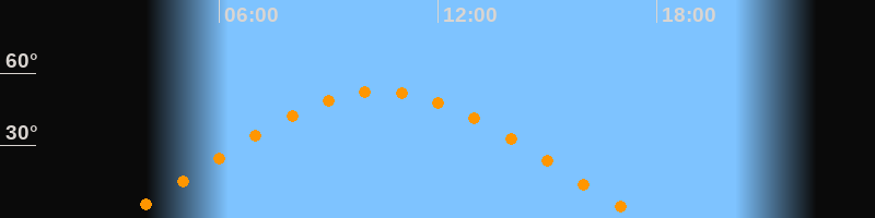 | Aufgang | 03:16 Uhr im Osten (αAz = 68°) |