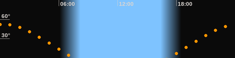 | Untergang | 07:32 Uhr im Westen (αAz = 292°) |