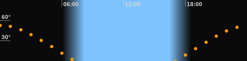 | Untergang | 07:21 Uhr im Westen (αAz = 292°) |