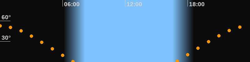 | Aufgang | 16:46 Uhr im Osten (αAz = 68°) |