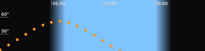 | Aufgang | 23:41 Uhr im Osten (αAz = 68°) |