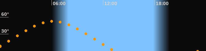 | Höchster Stand (Kulmination) | 06:11 Uhr (h = 52,5°) |