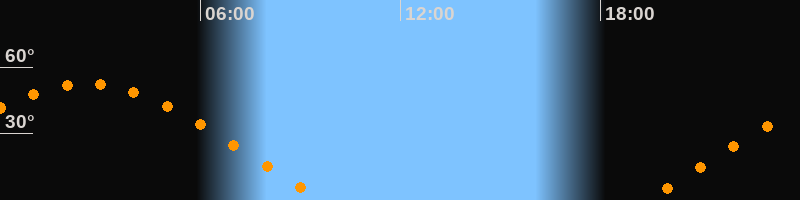 | Aufgang | 19:20 Uhr im Osten (αAz = 68°) |