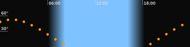 | Aufgang | 18:17 Uhr im Osten (αAz = 68°) |