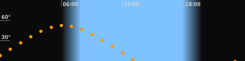 | Höchster Stand (Kulmination) | 06:12 Uhr (h = 52,5°) |