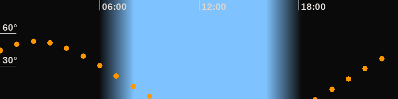 | Untergang | 09:20 Uhr im Westen (αAz = 292°) |