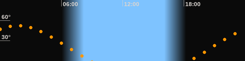 | Aufgang | 18:30 Uhr im Osten (αAz = 68°) |