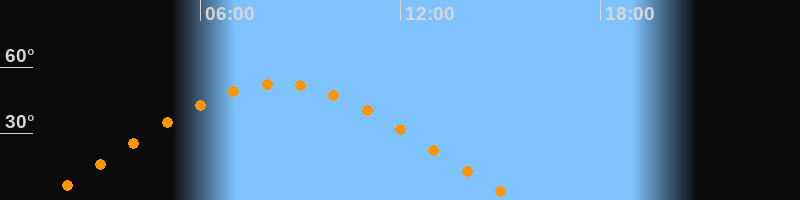 | Aufgang | 01:06 Uhr im Osten (αAz = 68°) |