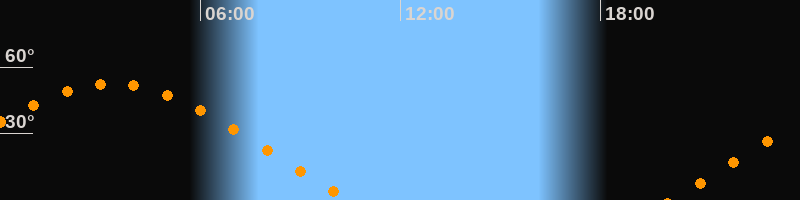 | Untergang | 10:29 Uhr im Westen (αAz = 292°) |