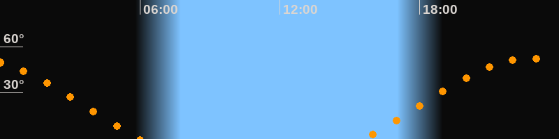 | Aufgang | 15:36 Uhr im Osten (αAz = 68°) |