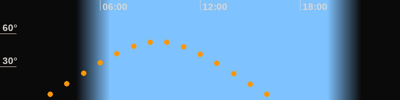 | Aufgang | 02:18 Uhr im Osten (αAz = 68°) |