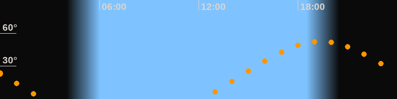 | Aufgang | 12:12 Uhr im Osten (αAz = 68°) |