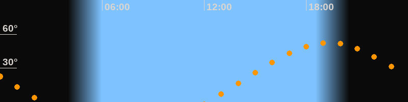 | Aufgang | 12:08 Uhr im Osten (αAz = 68°) |
