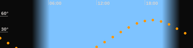| Höchster Stand (Kulmination) | 18:51 Uhr (h = 52,5°) |