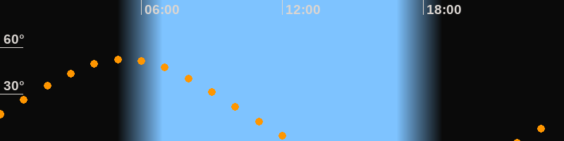 | Höchster Stand (Kulmination) | 05:16 Uhr (h = 52,5°) |