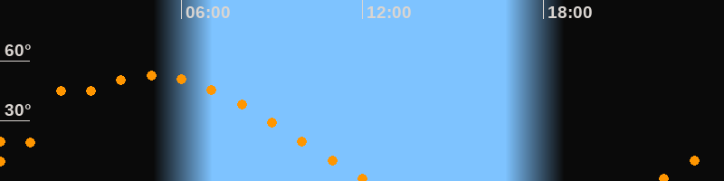 | Aufgang | 21:48 Uhr im Osten (αAz = 68°) |