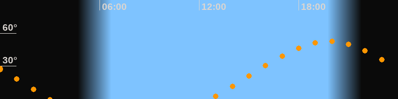| Aufgang | 12:39 Uhr im Osten (αAz = 68°) |