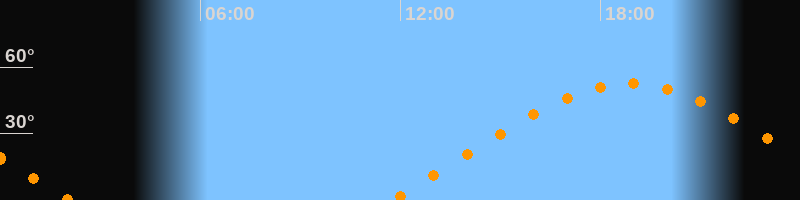 | Aufgang | 11:44 Uhr im Osten (αAz = 68°) |