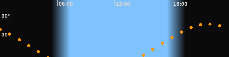 | Aufgang | 14:35 Uhr im Osten (αAz = 68°) |