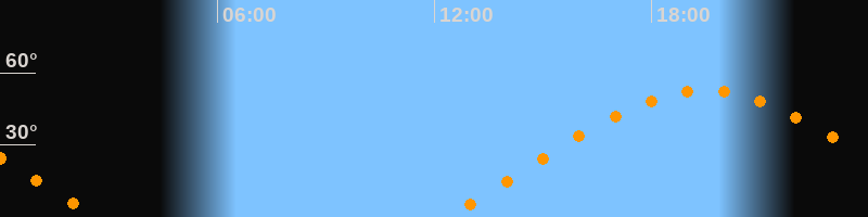 | Aufgang | 12:19 Uhr im Osten (αAz = 68°) |