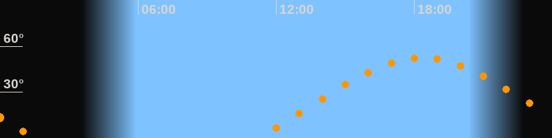 | Höchster Stand (Kulmination) | 18:20 Uhr (h = 52,5°) |