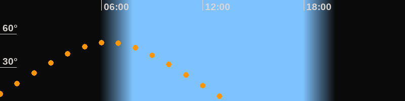 | Aufgang | 23:10 Uhr im Osten (αAz = 68°) |