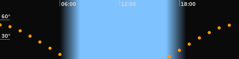 | Aufgang | 16:28 Uhr im Osten (αAz = 68°) |
