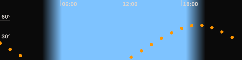 | Aufgang | 12:25 Uhr im Osten (αAz = 68°) |