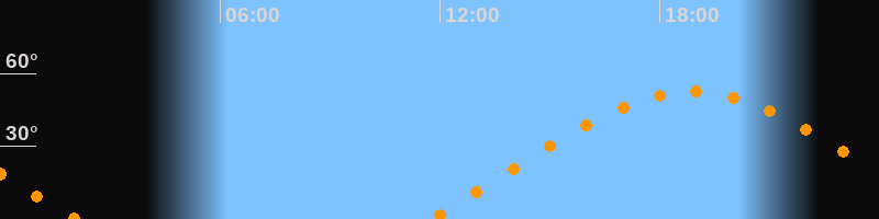 | Aufgang | 11:42 Uhr im Osten (αAz = 68°) |