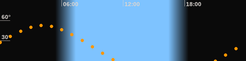 | Untergang | 11:20 Uhr im Westen (αAz = 292°) |