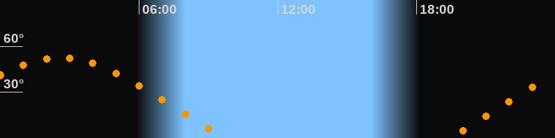 | Aufgang | 19:22 Uhr im Osten (αAz = 68°) |