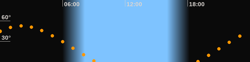 | Untergang | 09:14 Uhr im Westen (αAz = 292°) |