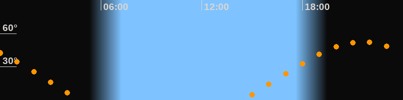 | Aufgang | 14:24 Uhr im Osten (αAz = 68°) |